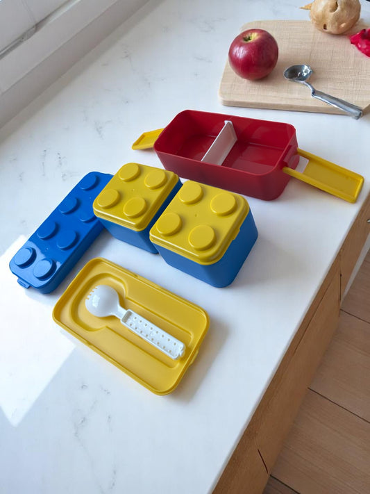 Lancheira Infantil 3 Andares com Talher Embutido - Design Divertido de Blocos, Compartimentos Independentes