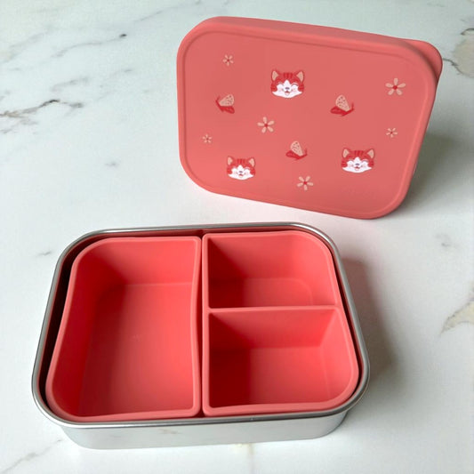 Lancheira Infantil Inox com Divisórias – Modelos Dino, Gatinha e Girafa