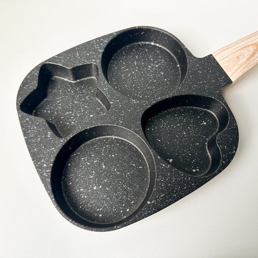 Frigideira Café da Manhã com 4 Divisórias – Antaderente com Cabo Imitando Madeira