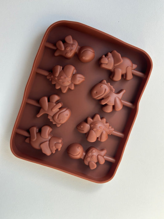 Molde DinoPop – Forma de Silicone para Pirulitos de Chocolate/Gelatina