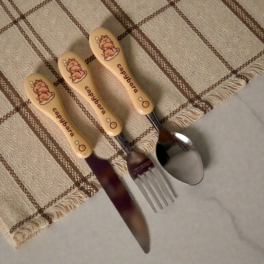 Kit Talheres Infantil Capivara com Estojo - As estampas podem variar conforme disponibilidade, porém todas são unissex