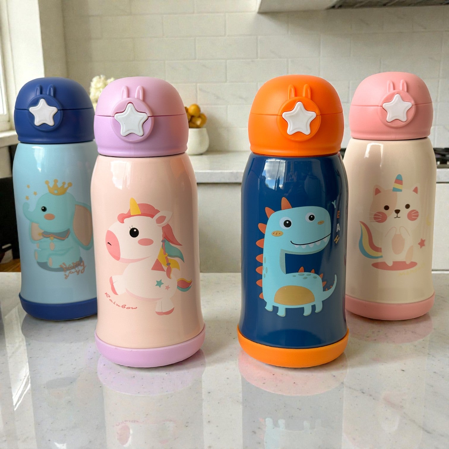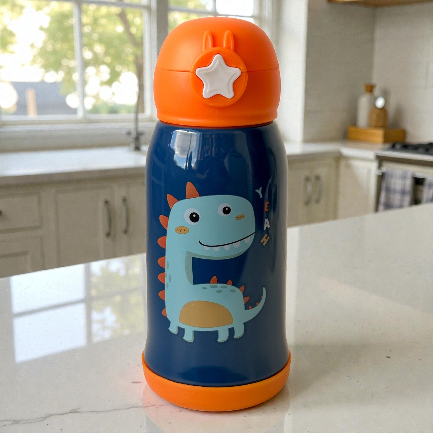 Garrafa infantil térmica de aço inox 500ml, projetada para manter bebidas frias ou quentes por mais tempo, garantindo praticidade na rotina escolar, esportes e passeios.