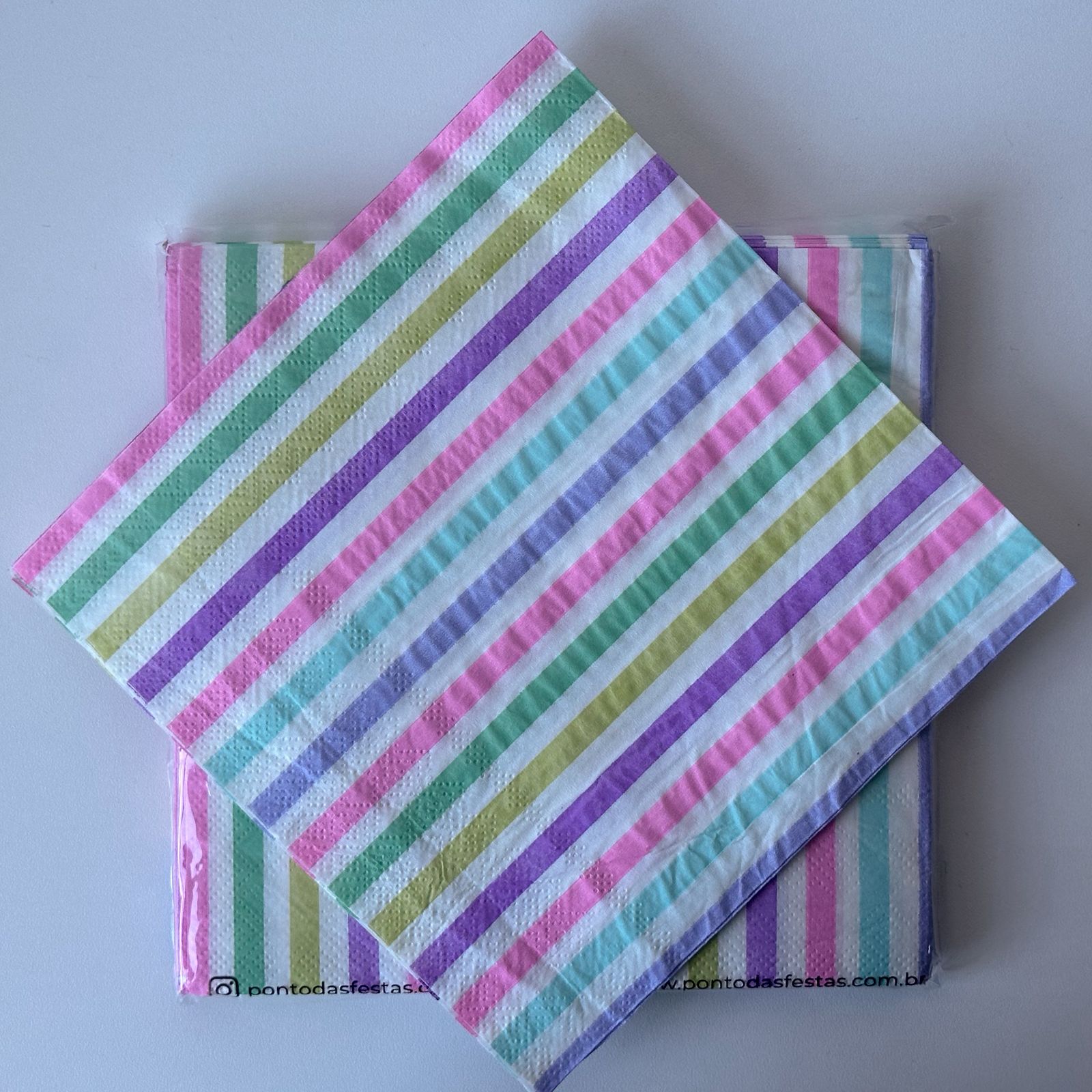 Guardanapo Listrado Colorido Pastel – 33x33cm (20 un)