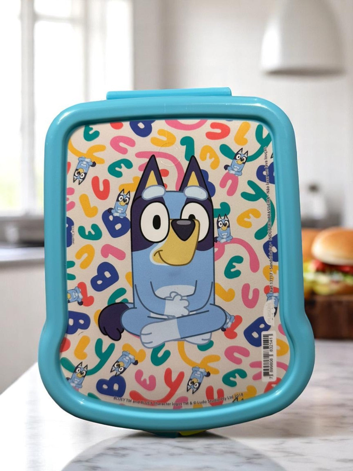 Sanduicheira Infantil Bluey Azul com Letras Coloridas