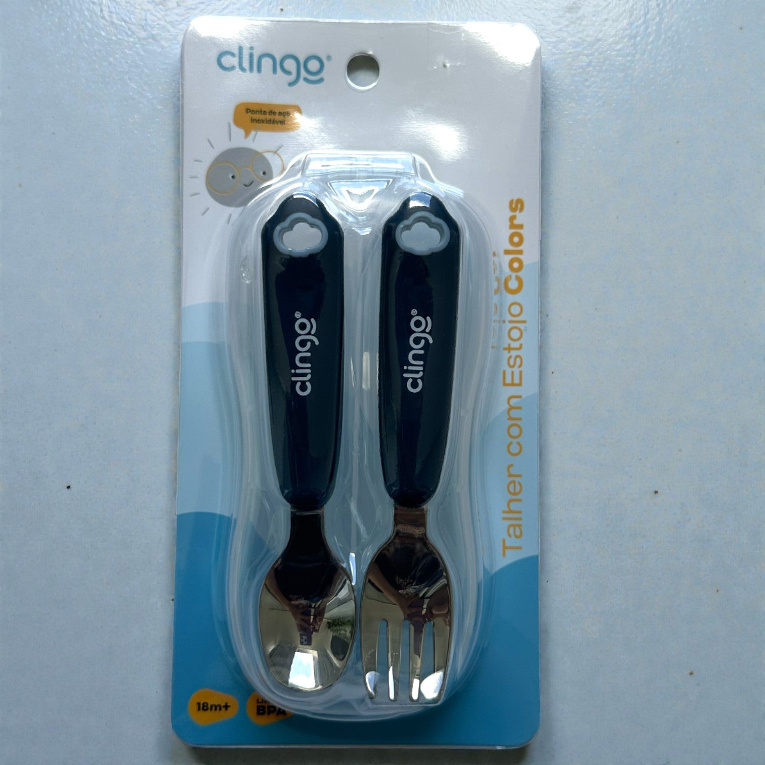 Talher Infantil Clingo com Estojo – Colher e Garfo em Aço Inox (18m+)